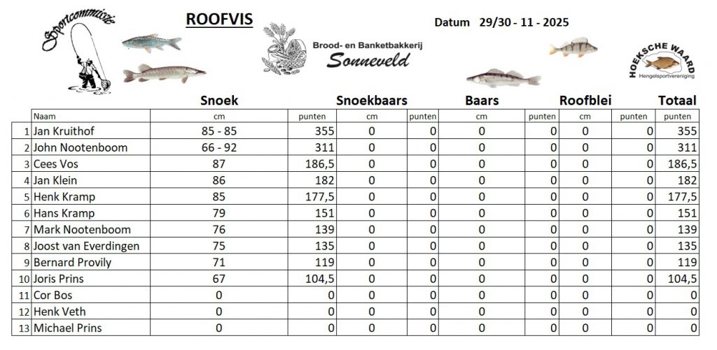 Geplaatst in Roofvissen, Uitslagen