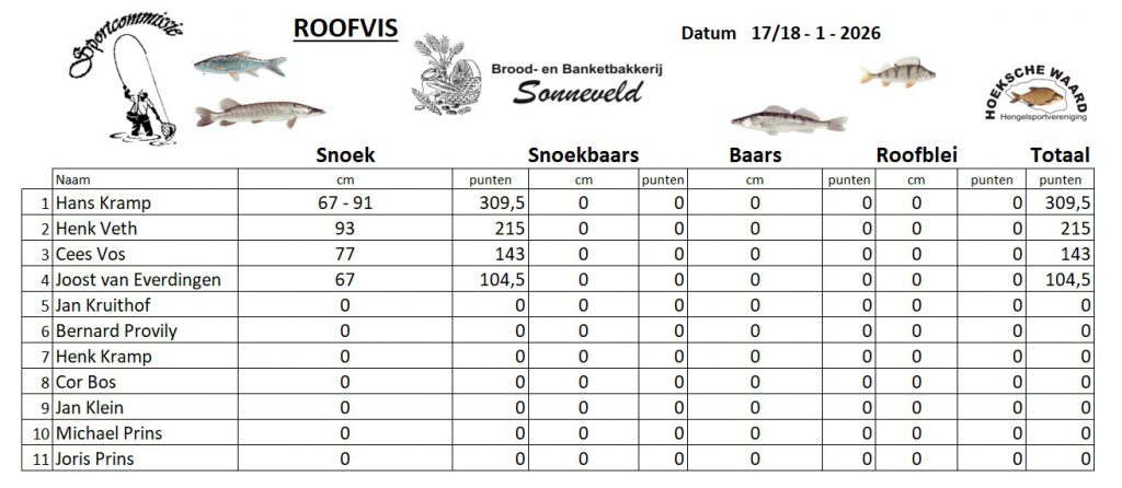 De eerste uitslag van 2026! Geplaatst op 18 januari 2026 door Jeroen Versnel Reageer Geplaatst in Roofvissen, Uitslagen