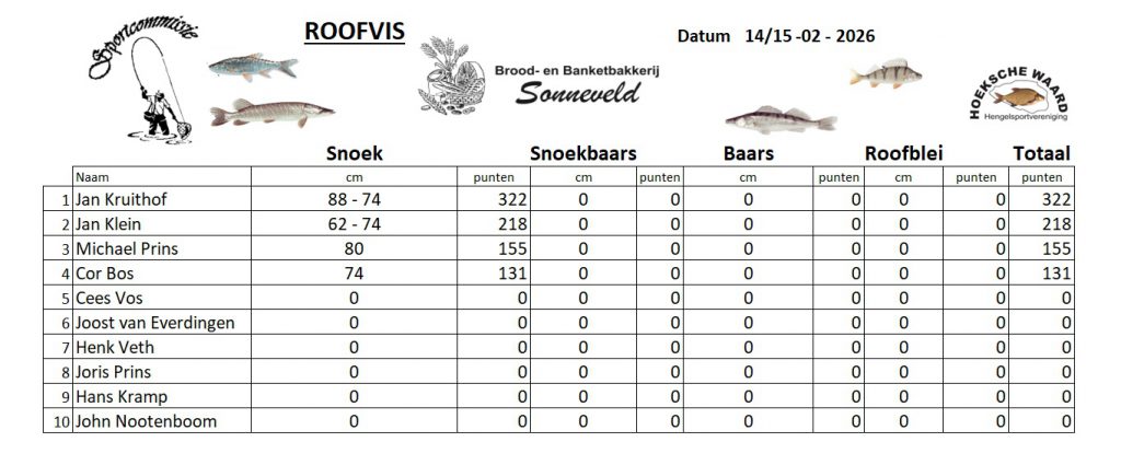 Jan en Jan laten zien hoe je moet Roofvissen. Geplaatst op 15 februari 2026 door Jeroen Versnel Reageer Geplaatst in Roofvissen, Uitslagen