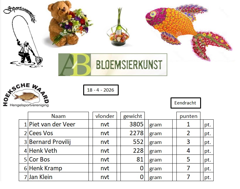 Piet wint de 2e witvis Wedstrijd. Wederom allemaal op hetzelfde water gevist. Geplaatst op 20 april 2026 door Jeroen Versnel Reageer Geplaatst in Uitslagen, Witvissen