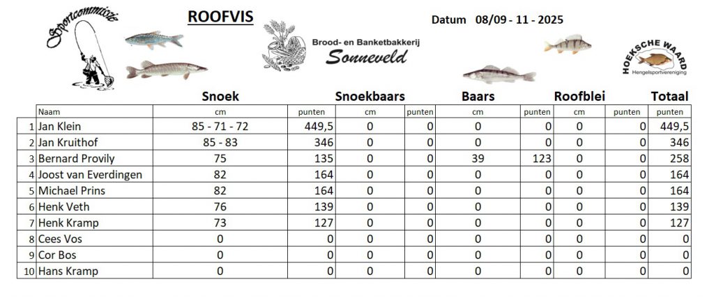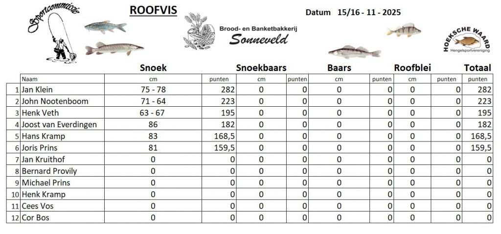 Het Roofvissen is weer begonnen. Henk Veth gaat goed van start en Bernard zit nog met het witvissen in z’n hoofd. Geplaatst in Roofvissen, Uitslagen